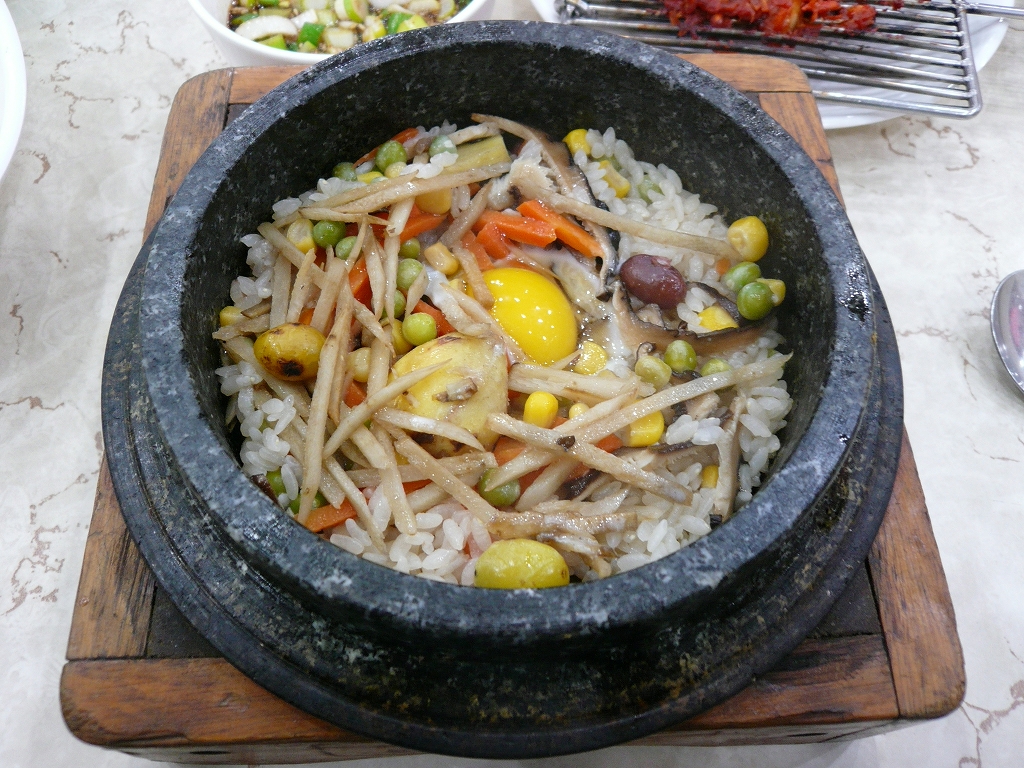 トルソッピビンパッは、全羅南道全州市の郷土料理です。トルソッと呼ばれる1人用の石の器で調理するのが特徴です。石焼ピビンパッが登場したのは 1970年代に入ってからのことだそうです。もともと家にある余り物で作るものだったピビンパッは、ステンレスやプラスチックの器で作られていました。それを、「チゲ同様に火にかけて最後までアツアツで食べられるピビンパッが欲しい!」との要求で、トルソッピビンパッが生まれたのだそうです。