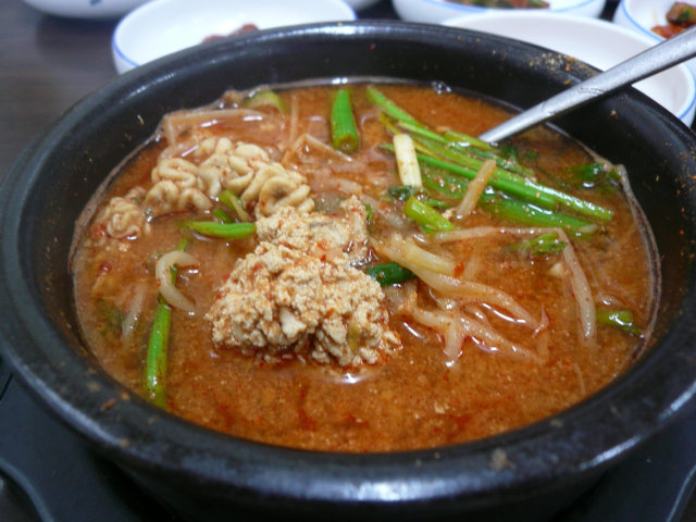 この魚卵ですが、通常は、「タラコ」を使うようです。いろいろなお店で食べましたが、タラコが基本で、辛い味付けのスープ料理でした。行列ができていたお店のアルタンは、タラコがたっぷり入っていて、そのほかにも貝、魚など、様々な海産物が入っていて、とても美味しかったです。