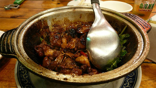 三杯鶏(サンベイジー)は、中国の江西料理です。その名の通り、鶏料理なのですが、もともとは酒、ラード、醤油の3種類の調味料を1杯ずつ入れて味付けをしていました。このため、三杯鶏と呼ばれていまです。現在ではラードの代わりに胡麻油が用いられているようです。調理中に一切、水を使わないため、これらの調味料で濃厚かつ、こってりした味に仕上がります。