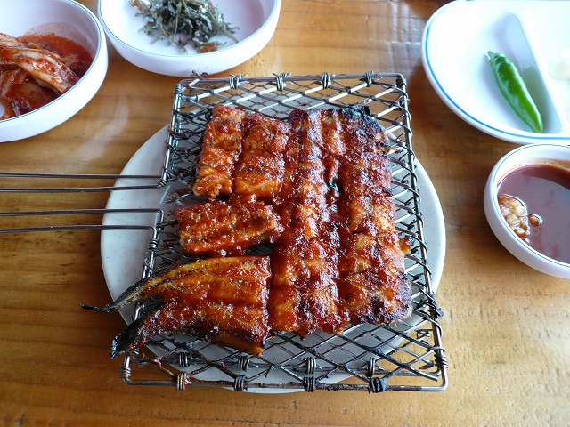 実は、韓国ではウナギもアナゴもハモも、みんなまとめて、チャンオ(長魚)と呼ばれているのだそうです。一応、区別するためにウナギは「ミンムルチャンオ(淡水のチャンオ)」、アナゴは「パダチャンオ(海のチャンオ)」、ハモは「ケッチャンオ(浜辺のチャンオ)」と呼ばれていますが、いずれもチャンオ(長魚)です。 韓国では、一般的にウナギはヤンニョムグイ(コチュジャン(唐辛子味噌)の味付け焼き)か、ソグムグイ(塩焼き)で食べられているようです。(「ソグム」は、韓国語で「塩」の意味です。) ヤンニョムグイは、コチュジャン(唐辛子味噌)を使ったタレで焼いた鰻です。見た目は赤く、味はピリ辛です。もちろん、お店によって秘伝のタレを作っていますので、お店ごとに味は違います。甘辛い味から、辛さがきついお店など、いろいろなお店のウナギを食べ比べてみると良いと思います。 ソグムグイは、日本の「ウナギの白焼き」みたいな感じで、うなぎの美味しさを引き立たせた料理です。日本人なら、このままで食べても十分、美味しくいただけるのですが、韓国式は違います。 韓国では、ソグムグイでもヤンニョムグイでも、焼いた鰻をそのまま食べることはしません。テーブルには焼肉の時と同じようにサンチュ、エゴマ、大葉、辛く味付けされたニラ、大根などが所狭しと置いてありますので、これらの葉っぱの上に焼いたウナギを乗せて、さらに味噌、ニンニク、千切りにされた生姜やキムチなどを乗せて、一緒に食べます。この食べ方こそが韓国式でしょう。 もちろん、食べ方は個人の好み次第です。ウナギだけを食べて、その美味しさを堪能するのも良いし、韓国流の味付けを楽しむのも良いし、どのような食べ方をしてもウナギは美味しいです。ただ、韓国でウナギの薬味として欠かせないショウガの千切りは、試してみたらいかがでしょうか。辛いヤンニョムグイの辛さを和らげてくれたり、口の中のウナギの脂を洗い流して、さっぱりさせてくれるので、次々とウナギを食べられるようになります。 ウナギは韓国でも滋養強壮料理として有名です。鰻は、全国、どこにでも専門店がありますが、川沿いのエリアが本場とされています。京畿道北部を流れる臨津江(イムジンガン)、仁川の江華島を流れる津頭江(チンドゥガン)、慶尚南道を流れる南江(ナムガン)、全羅北道を流れる仁川江(インチョンガン)、全羅南道を流れる栄山江(ヨンサンガン)の流域が有名です。 中でも、全羅北道高敞(コチャン)の鰻は、名物料理として有名です。高敞のウナギは、「風川ウナギ(プンチョンチャンオ)」というブランド名がついています。「風川」とは、海水と淡水の入り混じる「汽水域」を表しています。これは、海水が入ってくる時に風を引き連れてくることから、そこでとれるウナギに「風川」という名前がつけられたそうです。現在では、「高敞」や「仁川江」という名前よりも「風川ウナギ」という名称のほうが、この地域を代表するウナギとして有名になっているそうです。 ブログランキングに参加しています!応援お願いします! → おいしい水の定期便【クリスタル・クララ東名】12リットル・ボトル4本プレゼント! 韓流スターが日本からお取り寄せする、秘密のコスメって?! |