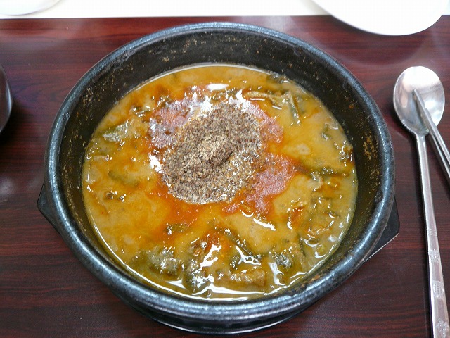 韓国では肝臓に良いとされている豆もやしを使ったスープに御飯を入れた料理です。“コンナムル”とは、“豆もやし”のことで、“クッ”とはスープのことです。そして、このスープに御飯を入れると、とコンナムルクッパとなります。“パッ”とは、“御飯”の意味です。