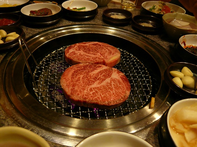この店に入ってみると、驚きの連続でした。たまたま通された部屋には、韓国の著名人らしい人達の写真やサインが壁一面にかざってあり、かなりの有名店であることが分かりました。写真やサインの中には、日本の有名人(スポーツ選手、タレント、テレビ局の司会者など)もたくさん、ありました。全く知りませんでしたが、日本でも有名な店なようです。 次にメニューを見て、値段の高さに驚きです!とにかく、高い!もちろん、韓国でも牛肉の焼肉は高いです。でも、その通常の焼肉の値段よりも、はるかに高いのです。超高級店です。何しろ、一緒に行った韓国の友人が、「子供の頃から何度も、この近くを通って、いつも見るだけだった!今日、この店で食事をするなんて、最高に嬉しい!!」と言っていましたので、韓国の人も気軽に行けるお店ではないのでしょう。 ユッケ、特上ロース、生カルビ、サルチサル(ヒレとカルビの境にある部位)、アンチャンサル(横隔膜、日本ではハラミと呼んでいる)などを食べましたが、どれも美味しかったです。このお店では、京畿道の抱川(ポチョン)にある直営牧場で生産されたブランド肉、白雲韓牛雪花肉(ベクウンハンウソルファ肉)のみを提供しているのだそうです。等級はA+以上だそうです。ブランドなどは分かりませんが、美味しいことだけは分かりました。美味しいお肉って、幸せになりますね! ブログランキングに参加しています!応援お願いします! → 激安!成田発ソウル3日間 なんと18700円~!! JTBの旅行はこちら PR |