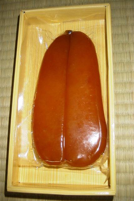 台湾では、通常、軽く表面を火であぶって大根、キュウリやネギの薄切りと一緒に食べます。しかし、私は、そのまま食べるのが一番美味しいと思います。(ちなみに、焼きすぎると、焼きタラコと同じ味になってしまいますので注意が必要です。) カラスミは日本の三大珍味の一つとされているようです。(日本の三代珍味とは、「カラスミ」、「うに」、「このわた」だそうです。)その形が唐の墨に似ているところから、カラスミ(唐墨)と呼ばれていて、豊臣秀吉にも献上されていたようです。 カラスミは、ボラの卵巣を塩干ししたものです。洗った卵巣に、15%~20%の食塩をこすり漬け、漬けたものを真水で塩抜きし、7~10日間天日乾燥させて作ります。冬場の台湾南部沖が、漁場となっています。歴史も古く、17世紀にオランダ人が台湾南部に入植し、ボラの塩漬けを中国大陸に輸出し、さらにその卵巣を加工しはじめたのがカラスミのはじまりだそうです。つまりカラスミは、台湾の歴史的な特産品と言ってもよいでしょう。(じゃあ、何で日本の三大珍味なのでしょうか?) 収穫期は毎年1月から3月頃までだそうです。また、年度によって豊漁であったり、そうでなかったりします。現在では、入手しようと思えば、1年中お目にはかかれますが、なんと言っても収穫時期に捕れたものの方が良いようです。中国文化圏ではカラスミの収穫期はちょうど正月にあたり、特に台湾ではおせち料理の一品にカラスミが食卓に登場することが多いようです。 台湾のお店の人に選ぶ時のポイントを聞いてみましたが、「大きいものが良い」と言っていました。色は、黄色っぽいものから、少し茶色がかったものまであって、色も関係ありそうなのですが、店の人は、「天然ものだから、色は色々!形も色々!関係ない!大きくて重い方が良い!」としか教えてくれませんでした。色とか、形とか、関係ないみたいです。一応、常温で1週間、冷蔵庫で1ヶ月、冷凍庫で半年は保存できるそうです。(冷凍すると、水分が抜けるので、風味や旨みが抜けてしまいます。)台湾に行ったら、絶対にカラスミを買って帰るべきだと思います。日本では、高くて買えないものの一つですから。 ブログランキング参加しています!応援お願いします! → 【じゃらん】国内15,000軒の宿をネットで予約OK!5%ポイント還元! |