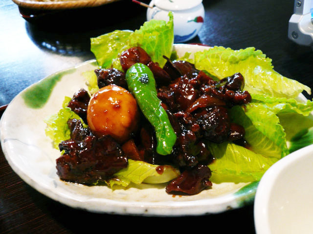 この「鳥もつ煮」の発祥は、大正2年(1913年)に甲府駅前で蕎麦屋を開店した「奥藤」の店主だと言われています。「奥藤」で「鳥もつ煮」が誕生したのは昭和25年(1950年)頃だそうです。当時はまだ砂糖が貴重だったため、甘辛いタレで煮られた鳥もつ煮は好評で、甲府一体に広がっていったようです。現在では、甲府近辺の蕎麦屋では、だいたい食べることができます。